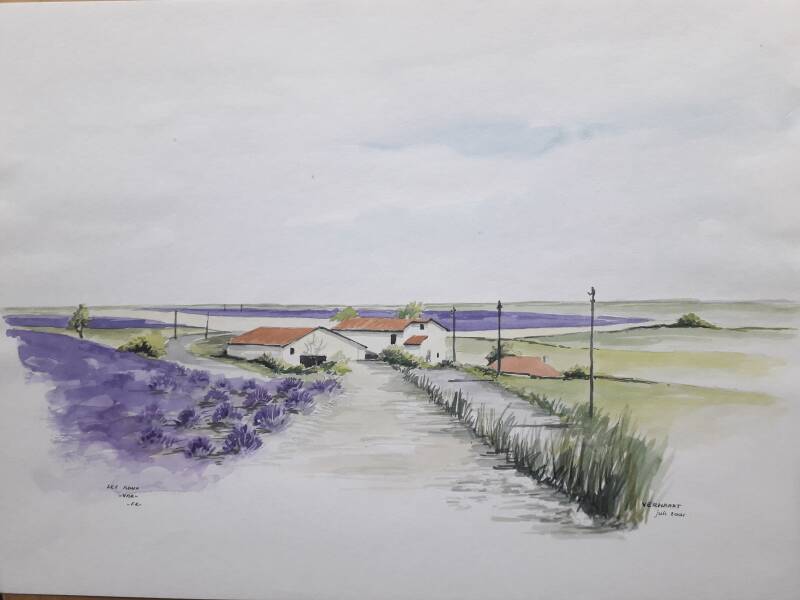 aquarel en O.I.-inkt, 27x38 cm, juli 2021