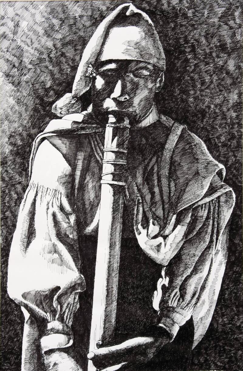 O.I.-inkt en kleurpotlood, 16x20 cm, oktober 2019